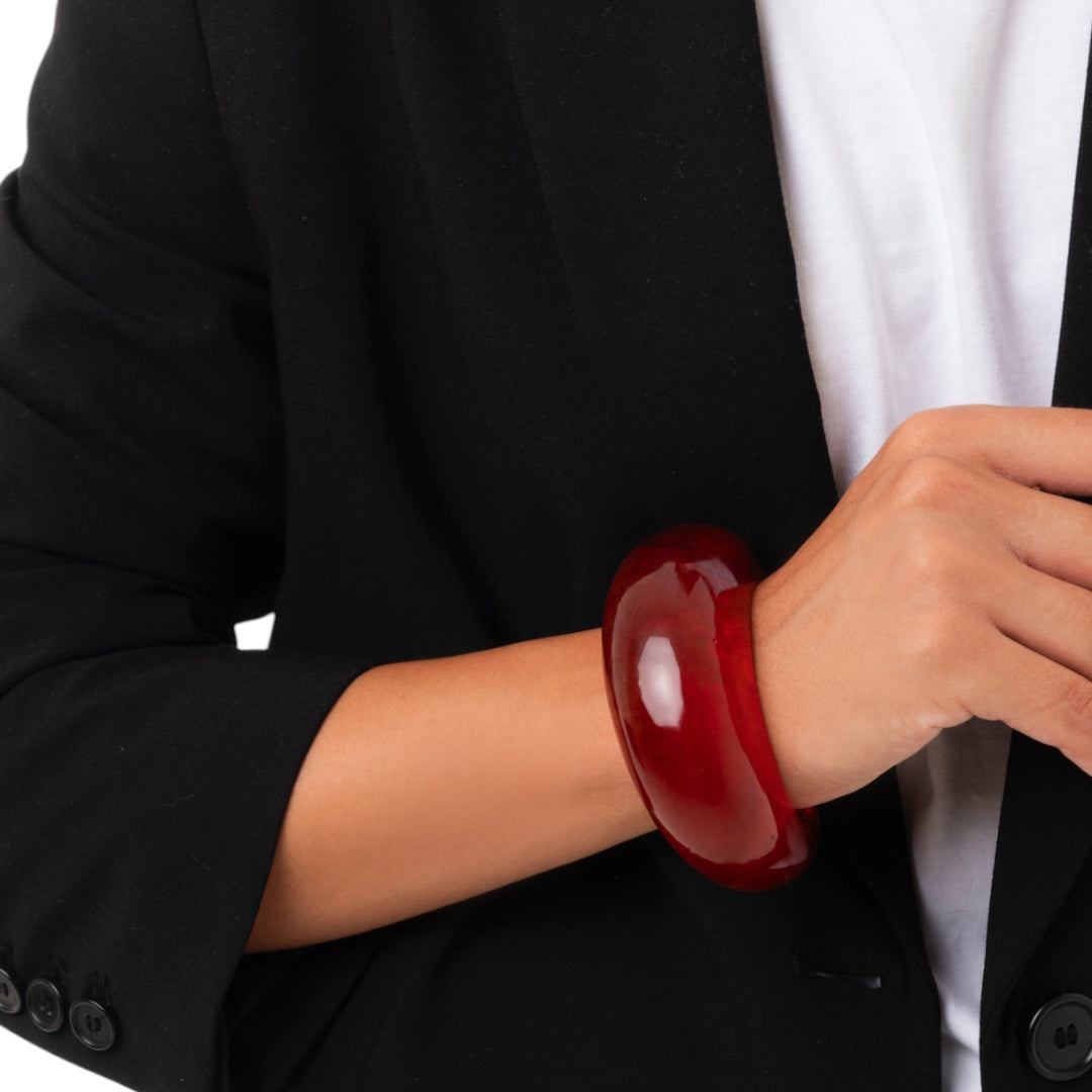 La finitura lucida e la forma pulita lo rendono un accessorio versatile e contemporaneo, perfetto per completare look casual o minimal-chic.
