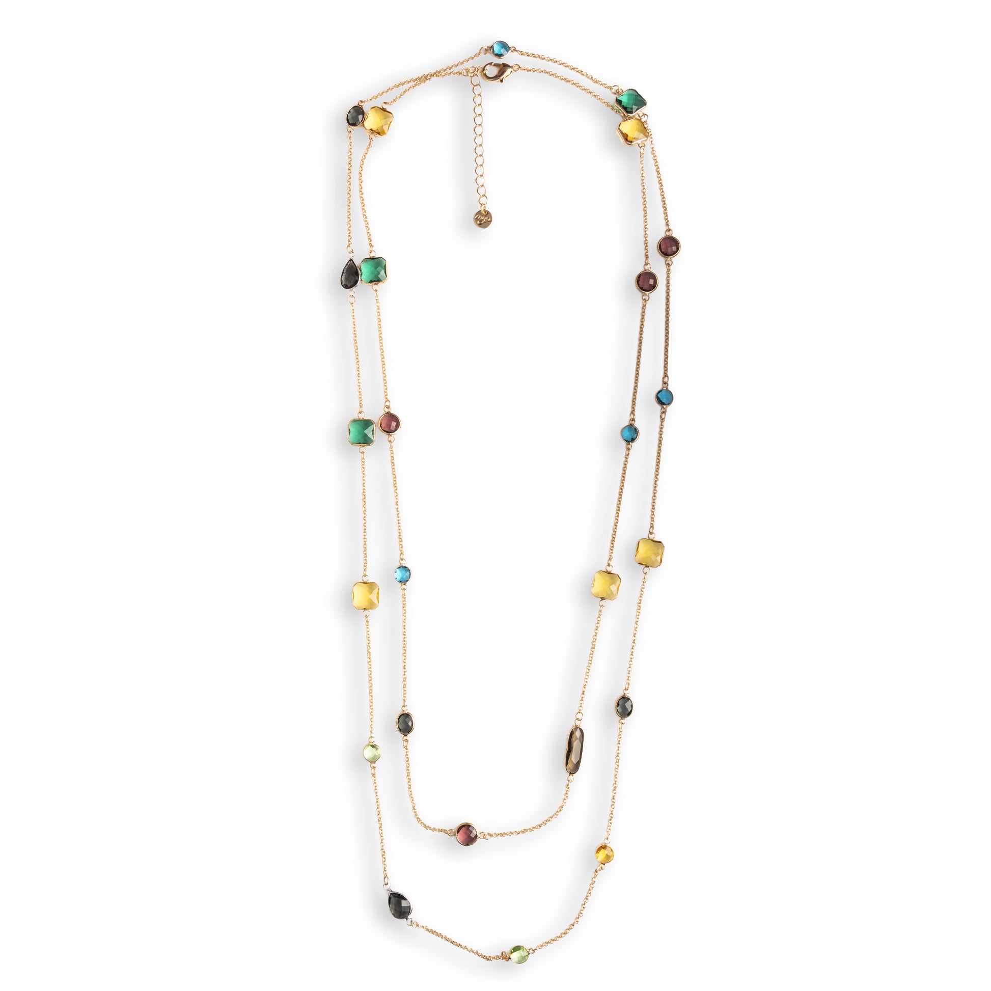 Collana a catena sottile lunga con pietre in vetro multicolore