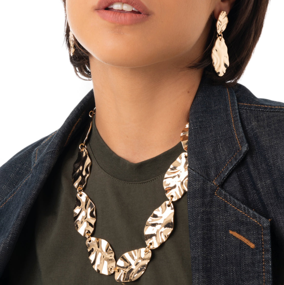 Collana girocollo con foglie in metallo martellato