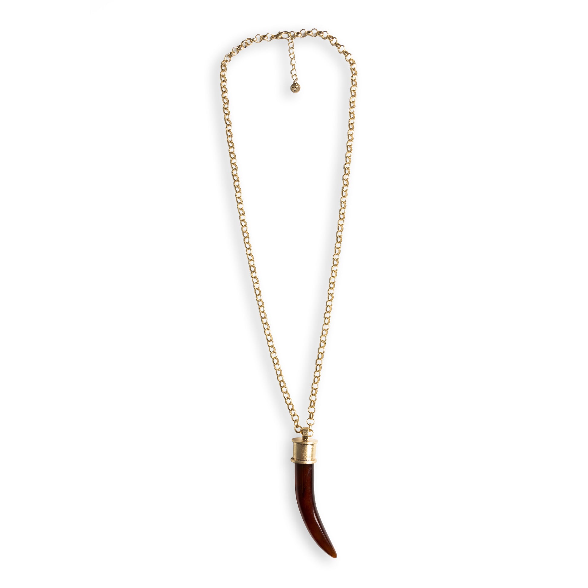 Collana lunga a catena con pendente a forma di corno in resina tono ambra