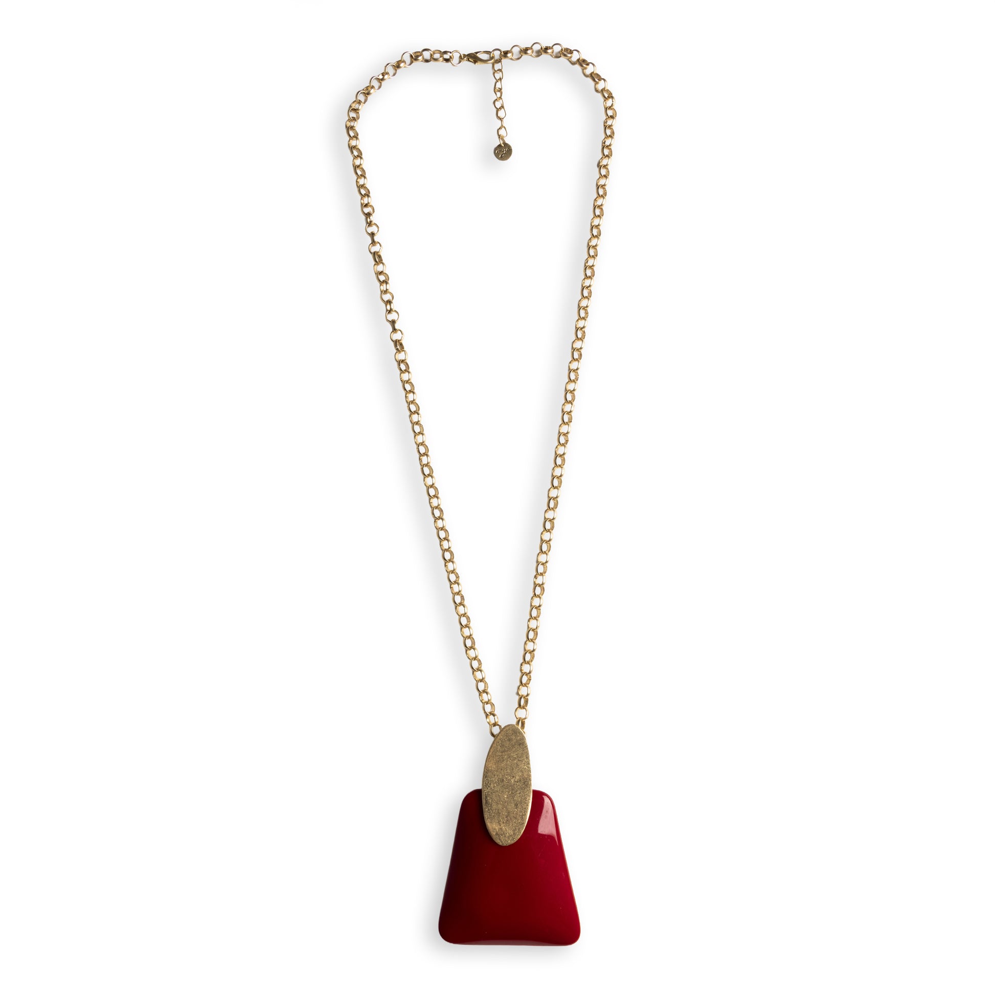 Collana lunga a catena con pendente geometrico in resina rosso