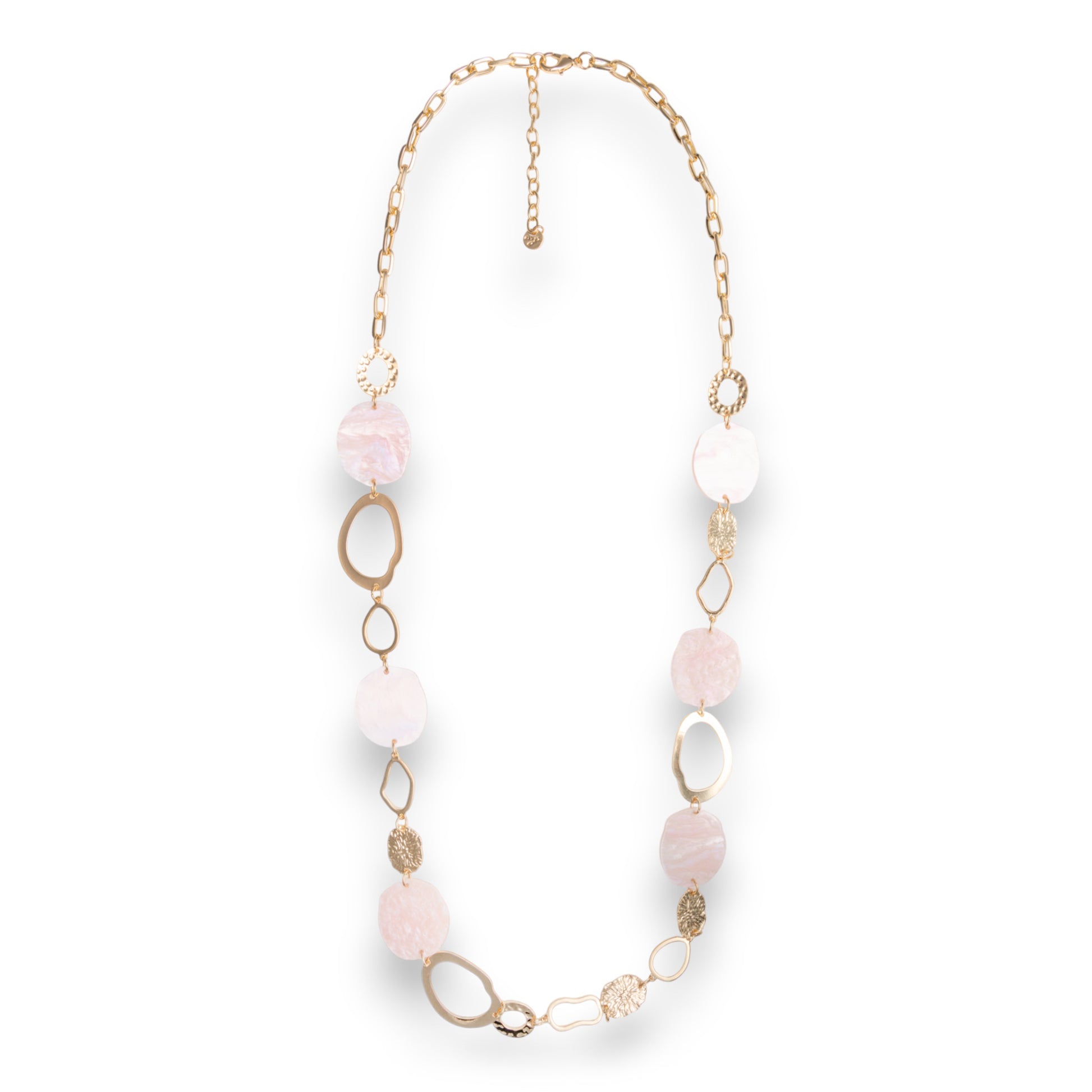 Collana lunga a catena con pietre circolari in acrilico rosa