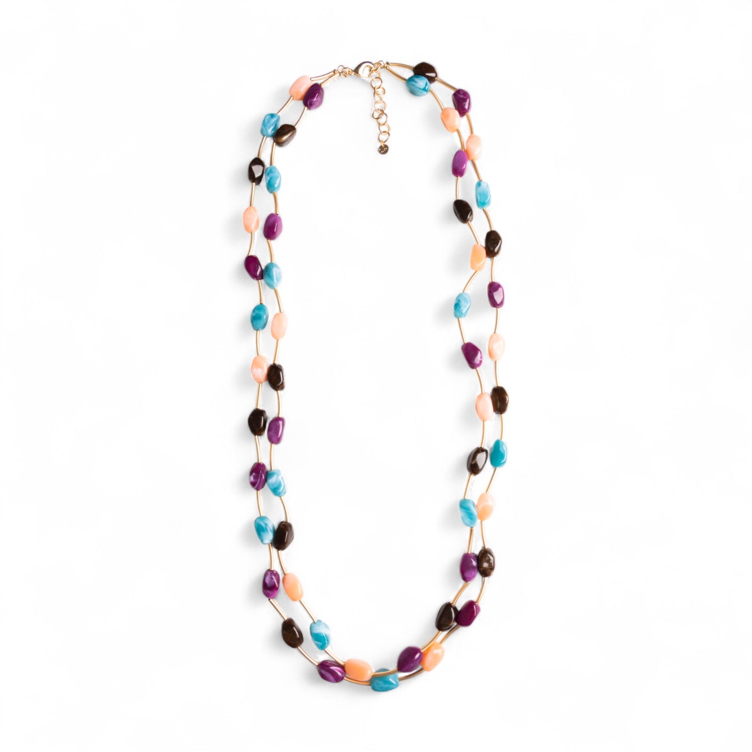 Collana lunga a due fili con pietre in acrilico multi viola