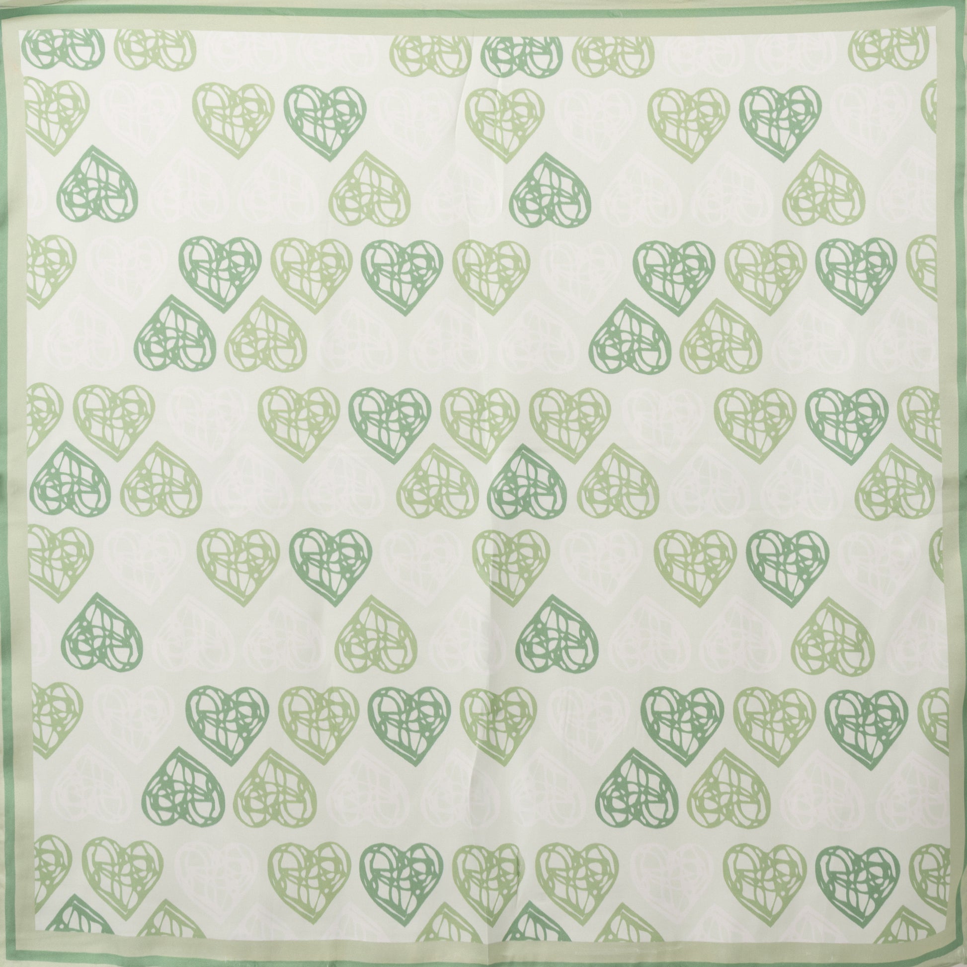 Foulard in seta con stampa a cuori tono verde