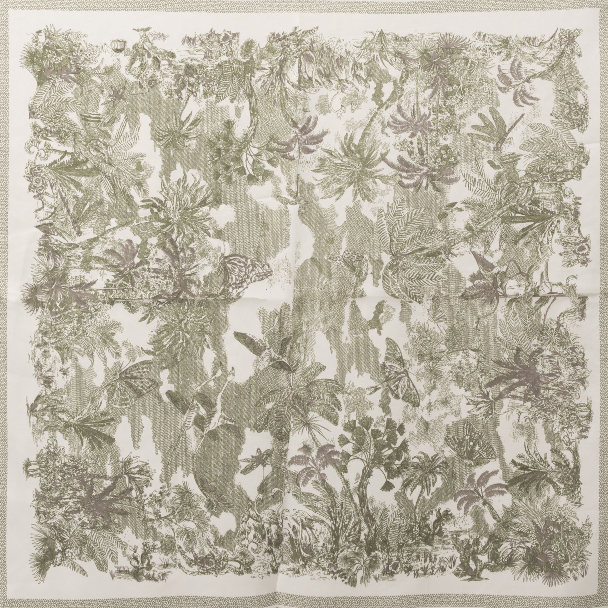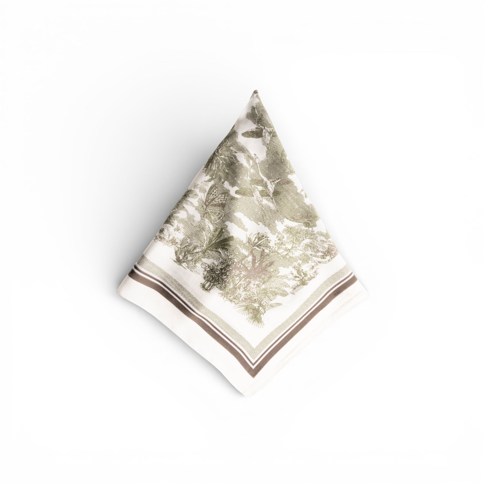Foulard in seta con stampa foresta tono verde militare