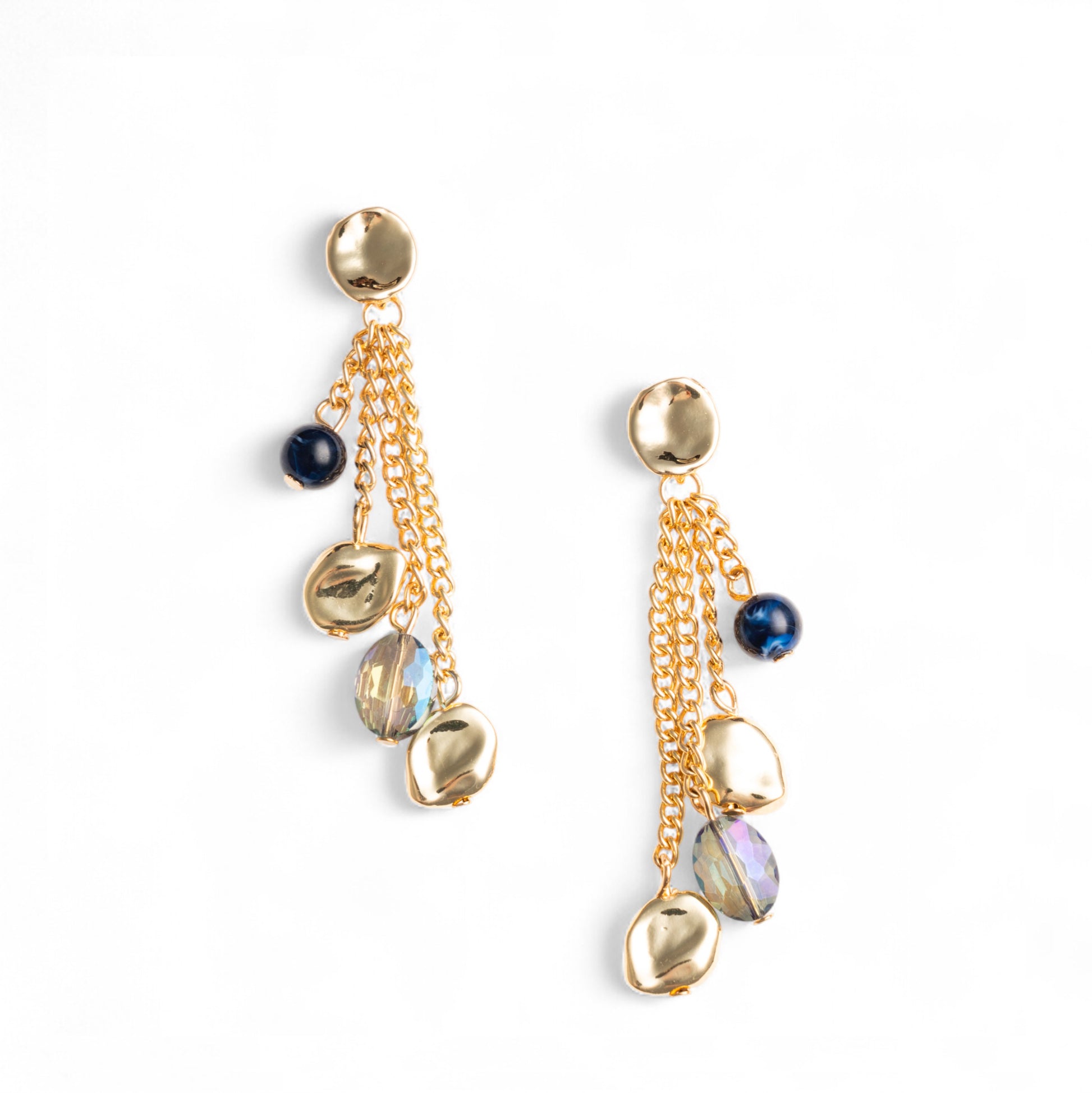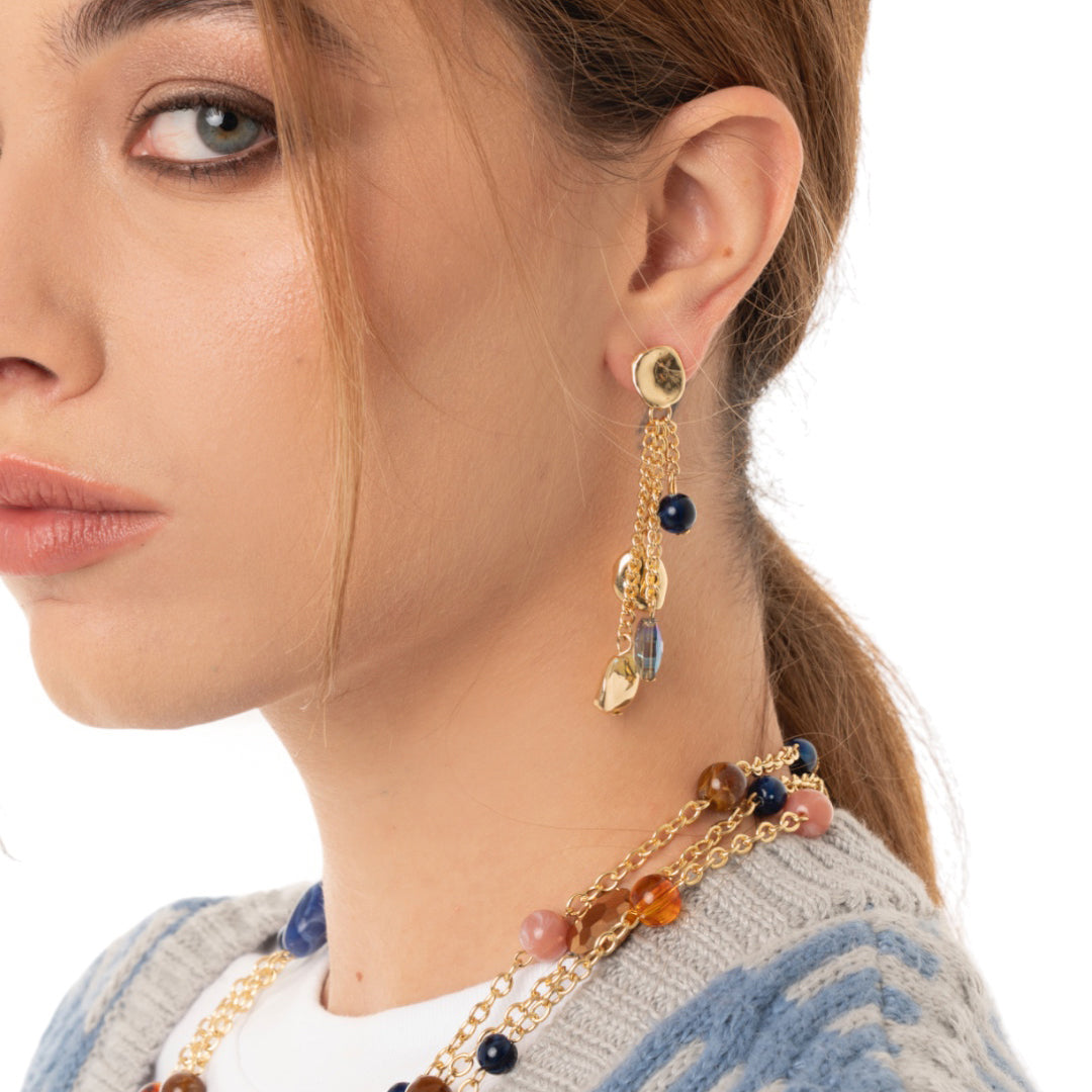 Orecchini pendenti a catena con pietre in acrilico tono blu