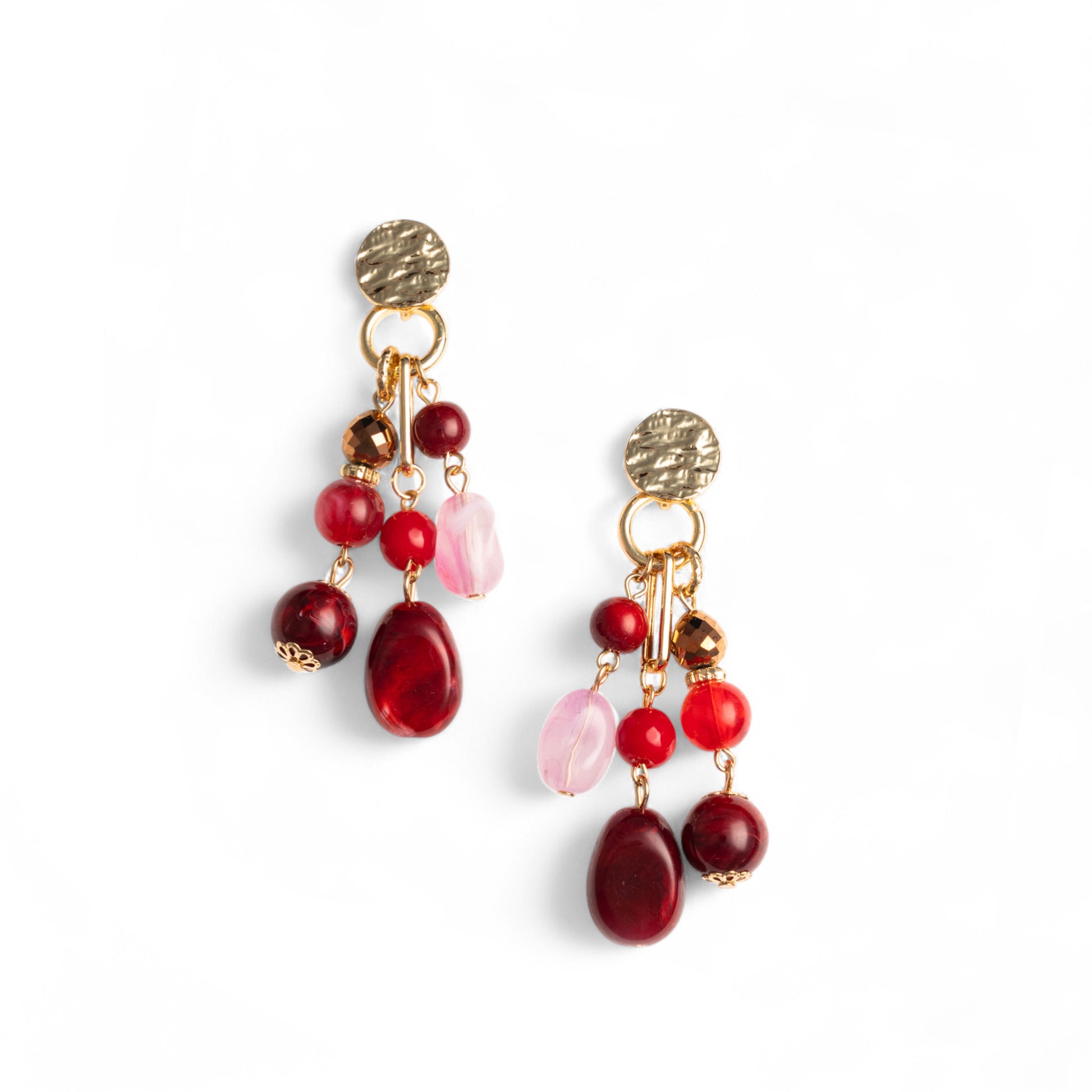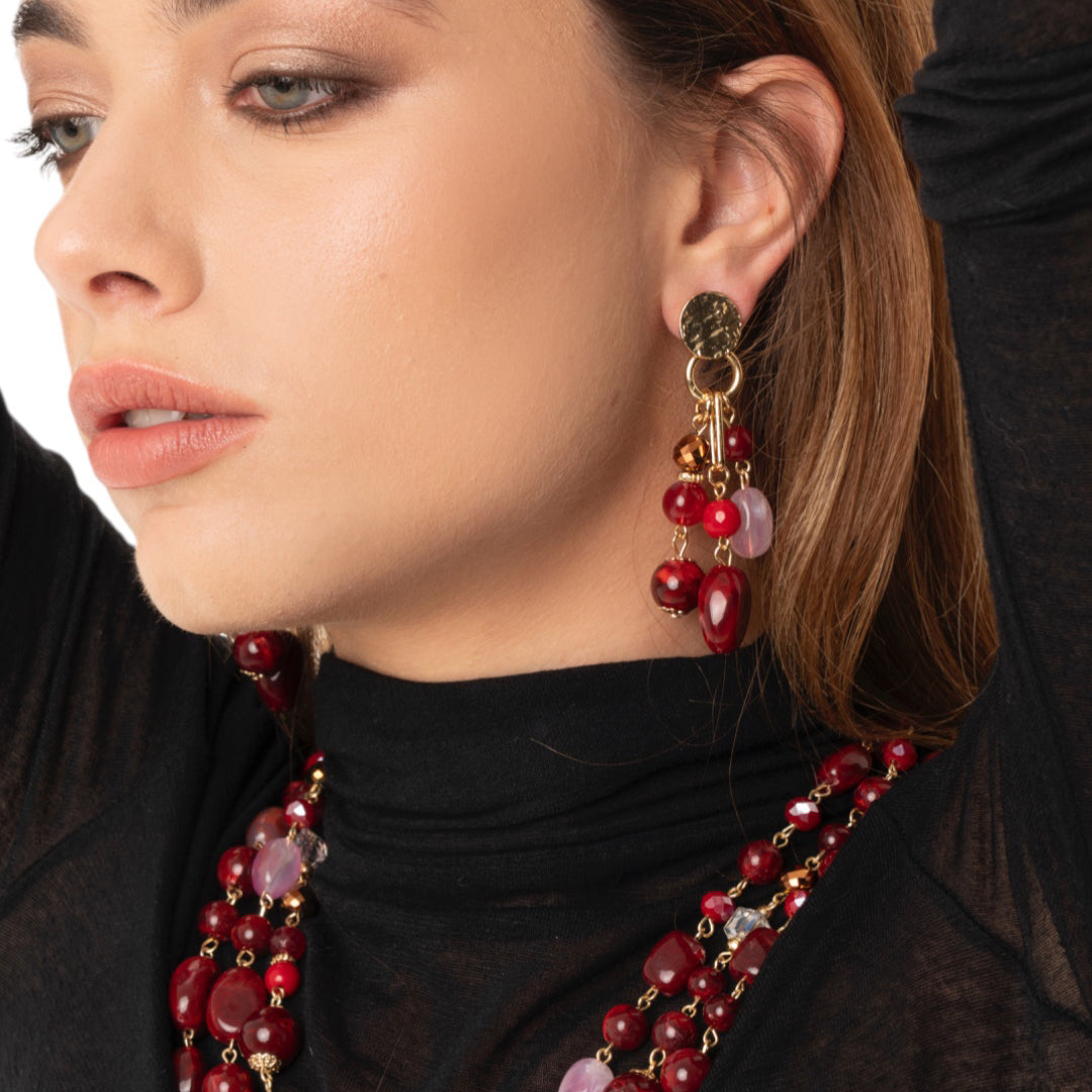 Orecchini pendenti a grappolo con pietre in acrilico multi rosso