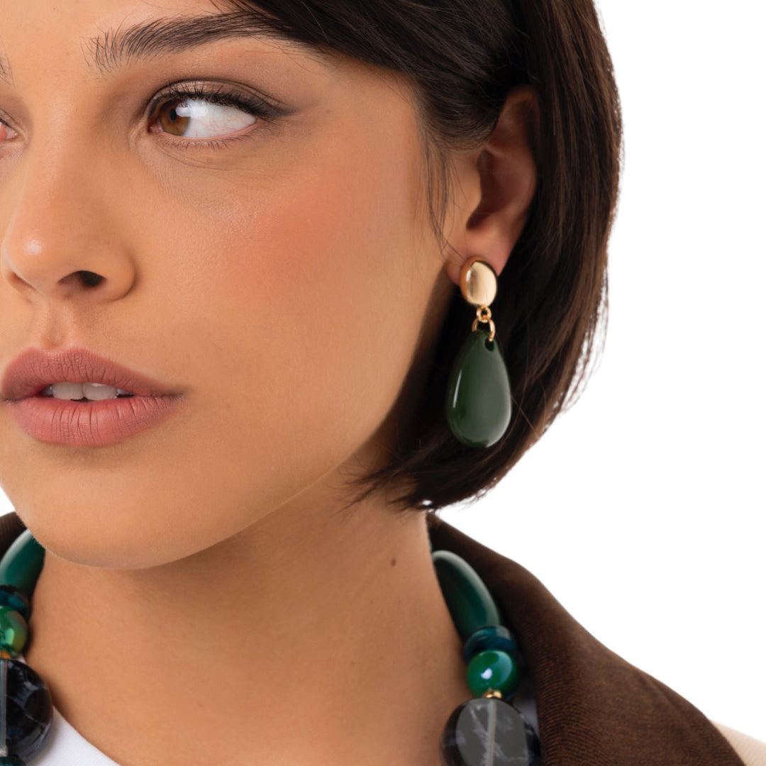 Orecchini pendenti con pietra a goccia in acrilico verde
