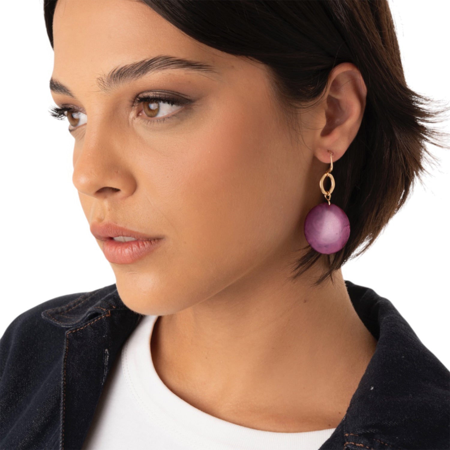 Orecchini pendenti con pietra schiacciata in acrilico viola
