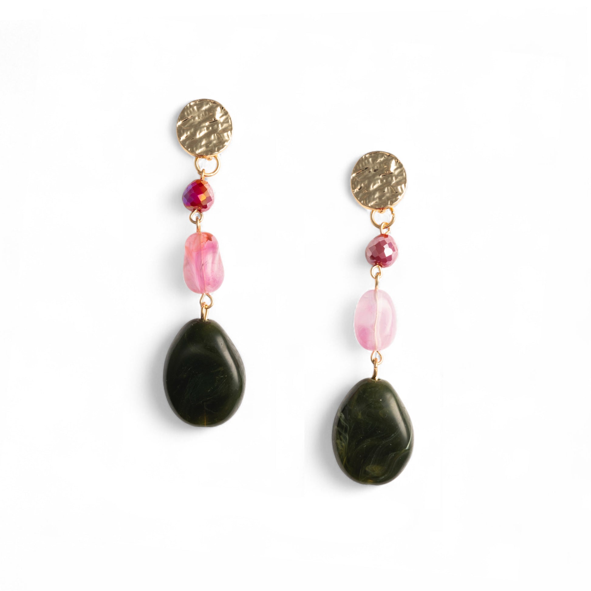 Orecchini pendenti con pietre in vetro ed acrilico multicolore