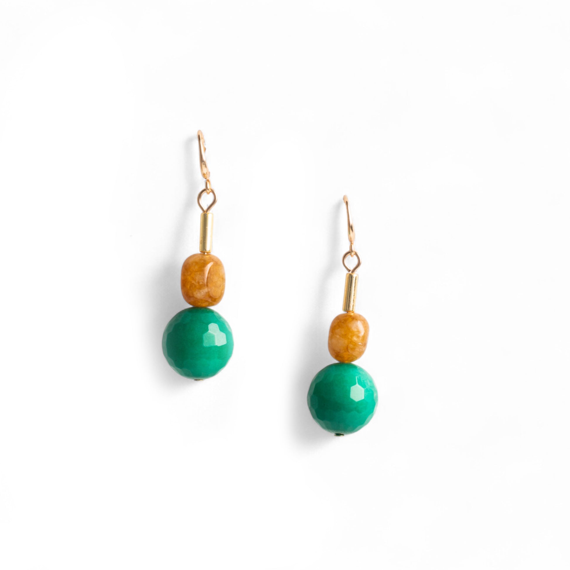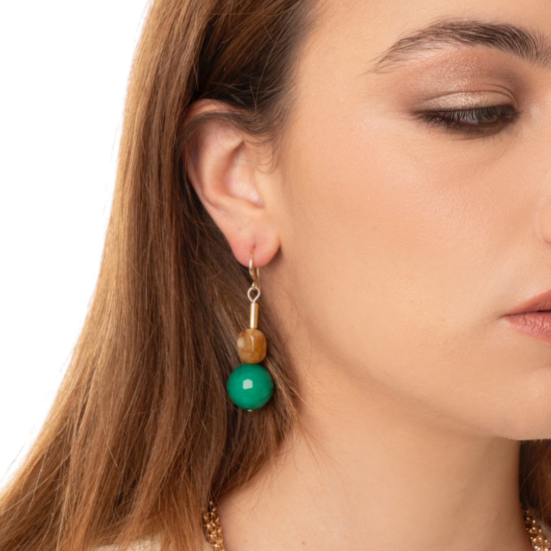 Orecchini pendenti con pietre in acrilico verde ed ambra