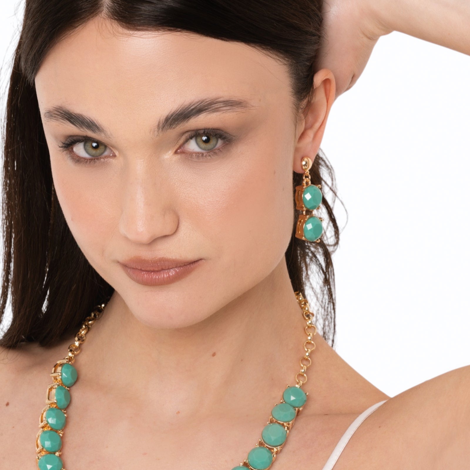 Orecchini pendenti con pietre in resina verde acqua