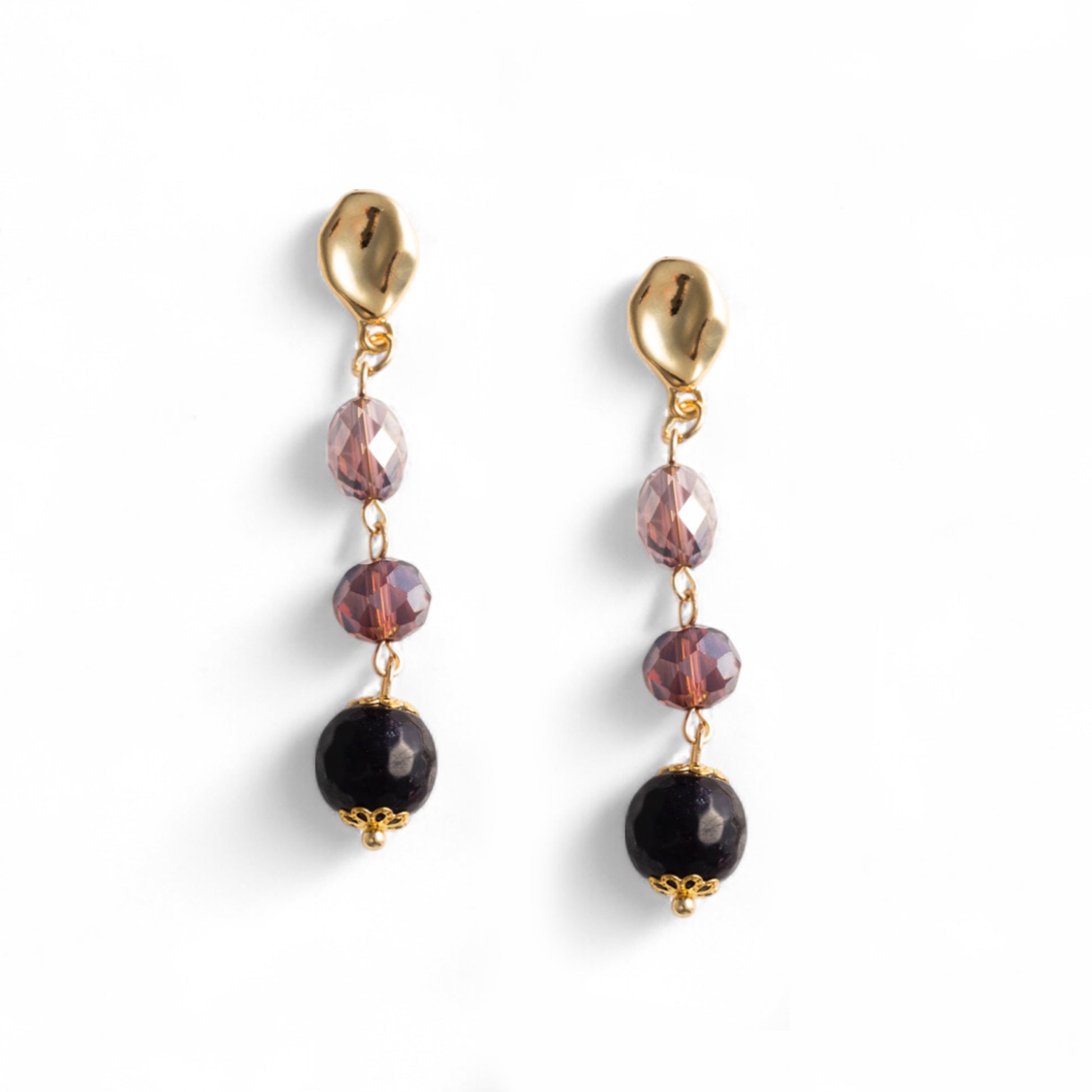Orecchini pendenti con tre pietre semidure in vetro tono viola