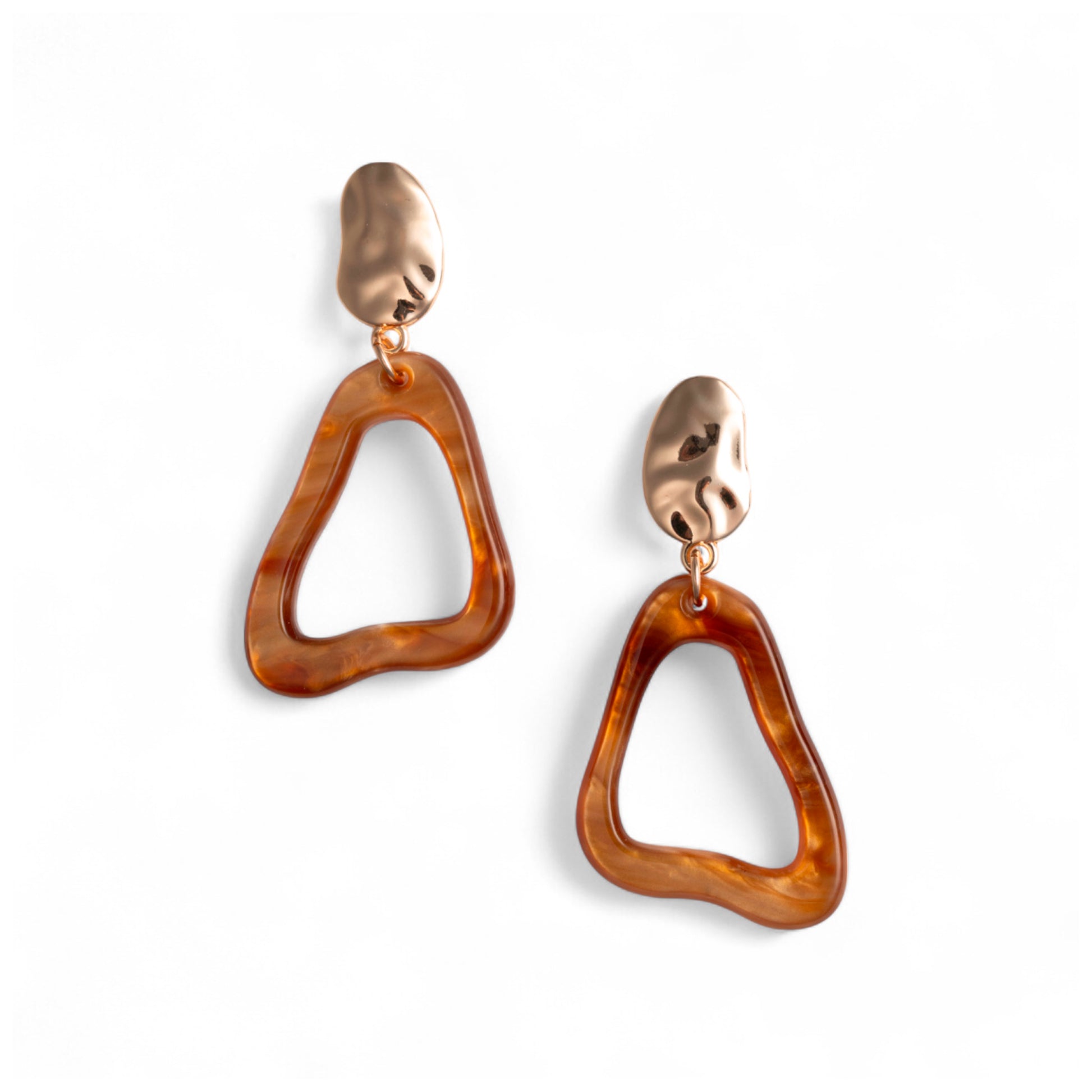 Orecchini pendenti in acrilico dalla forma irregolare, tono ambra