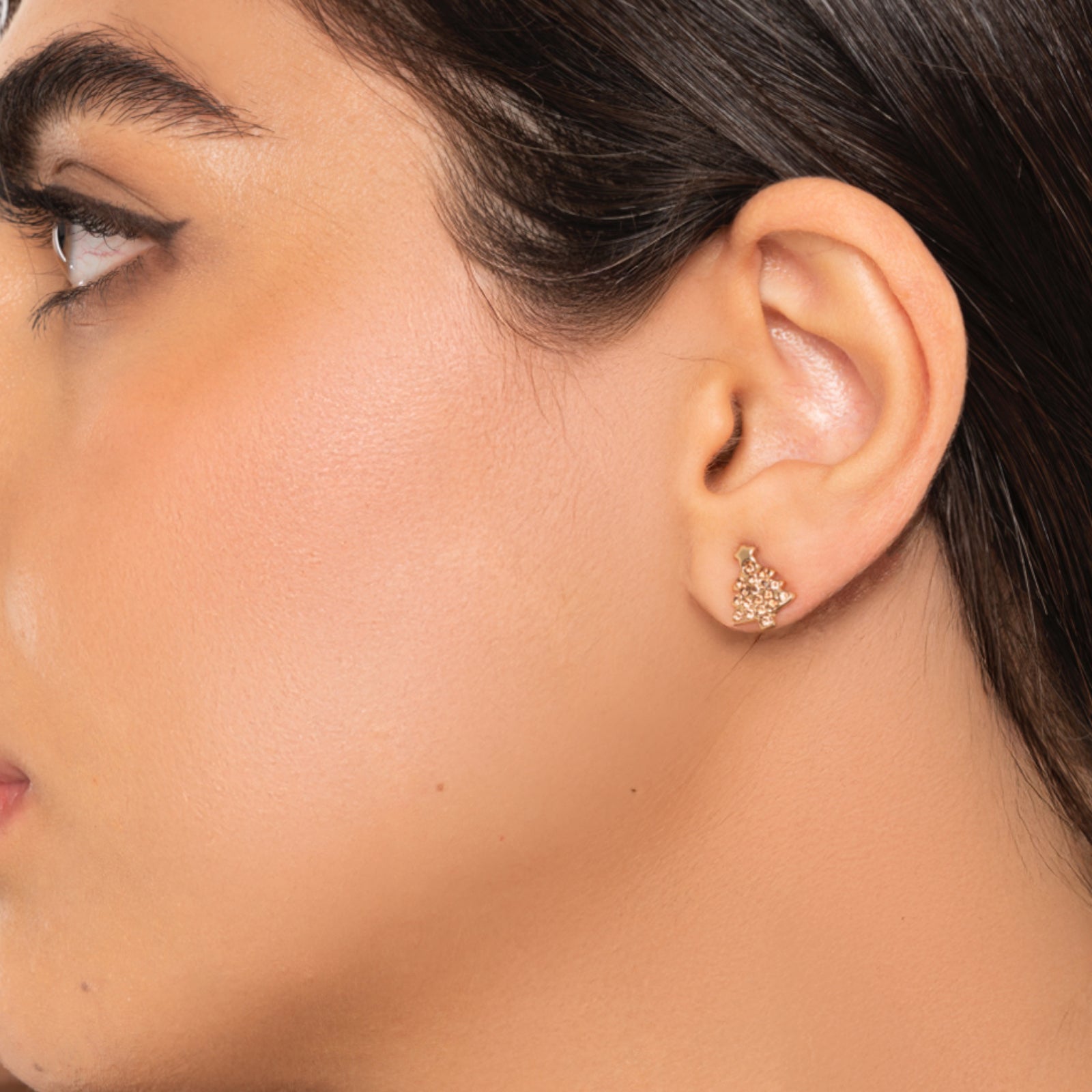 Orecchini piccoli in metallo con design ad albero di natale con pietre in vetro topazio