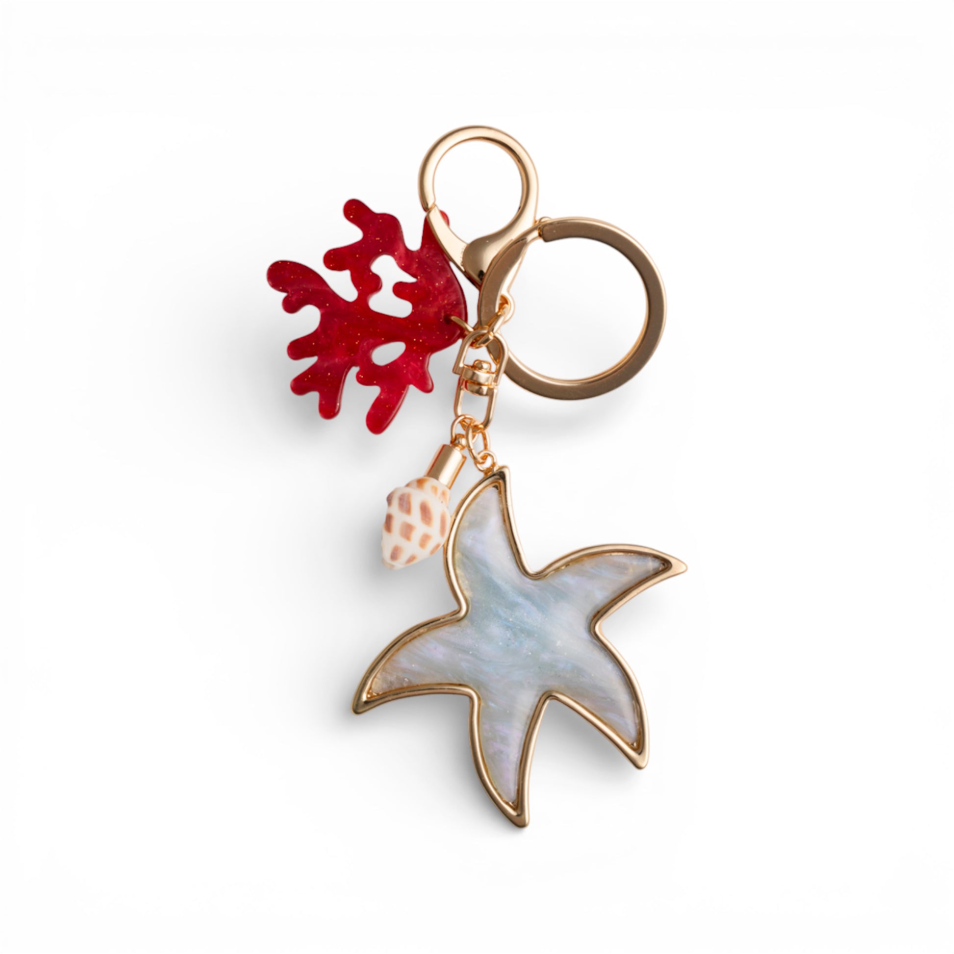 Portachiavi in metallo con stella marina e charms in acrilico