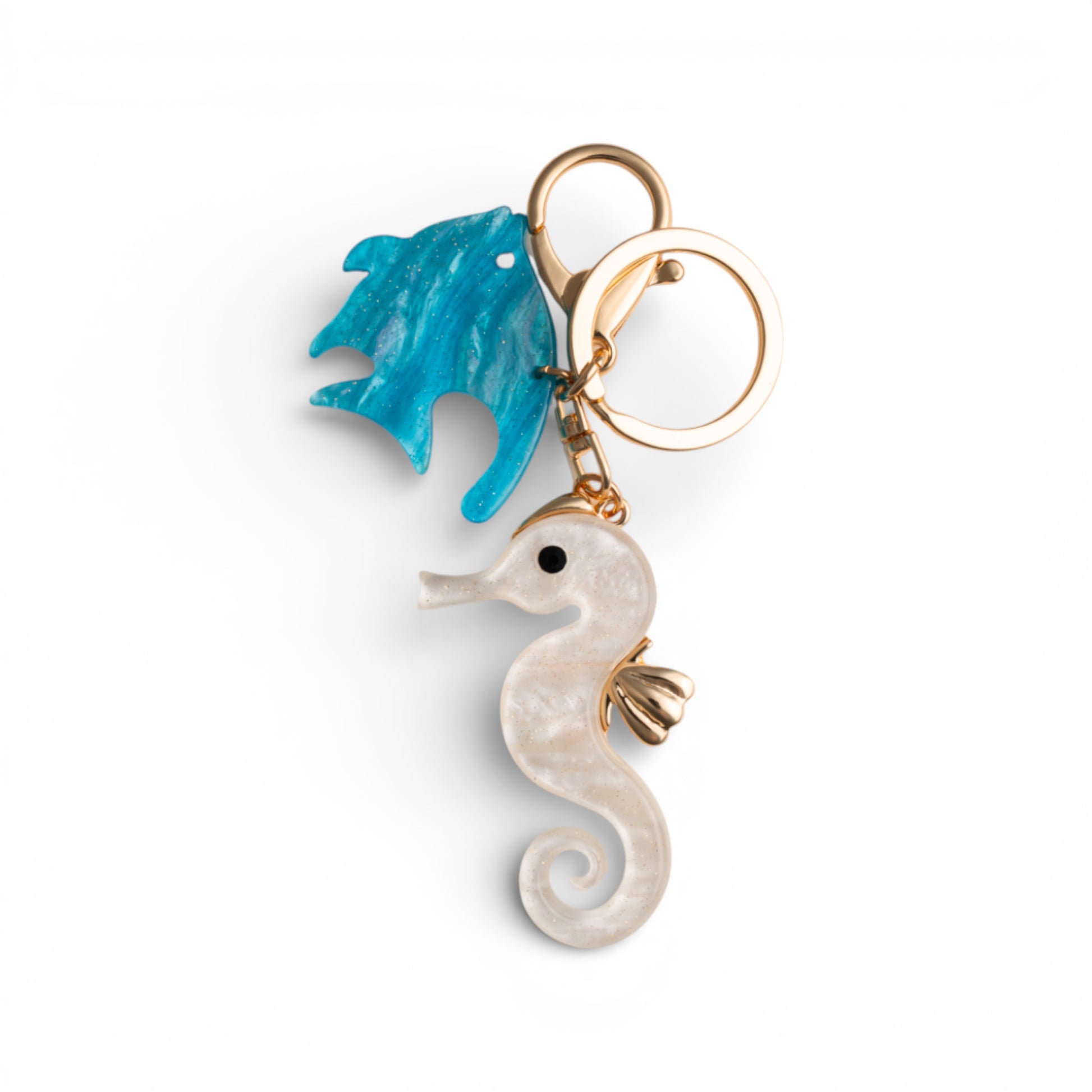 Portachiavi in metallo con pendente in acrilico a tema marino