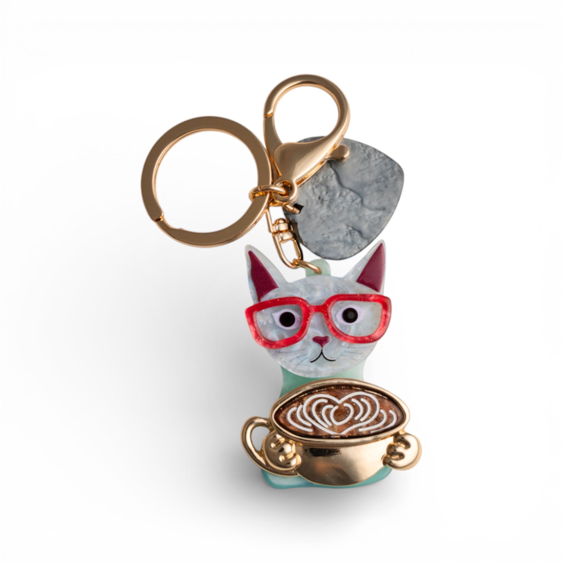 Portachiavi in metallo con pendente gatto con occhiali in acrilico