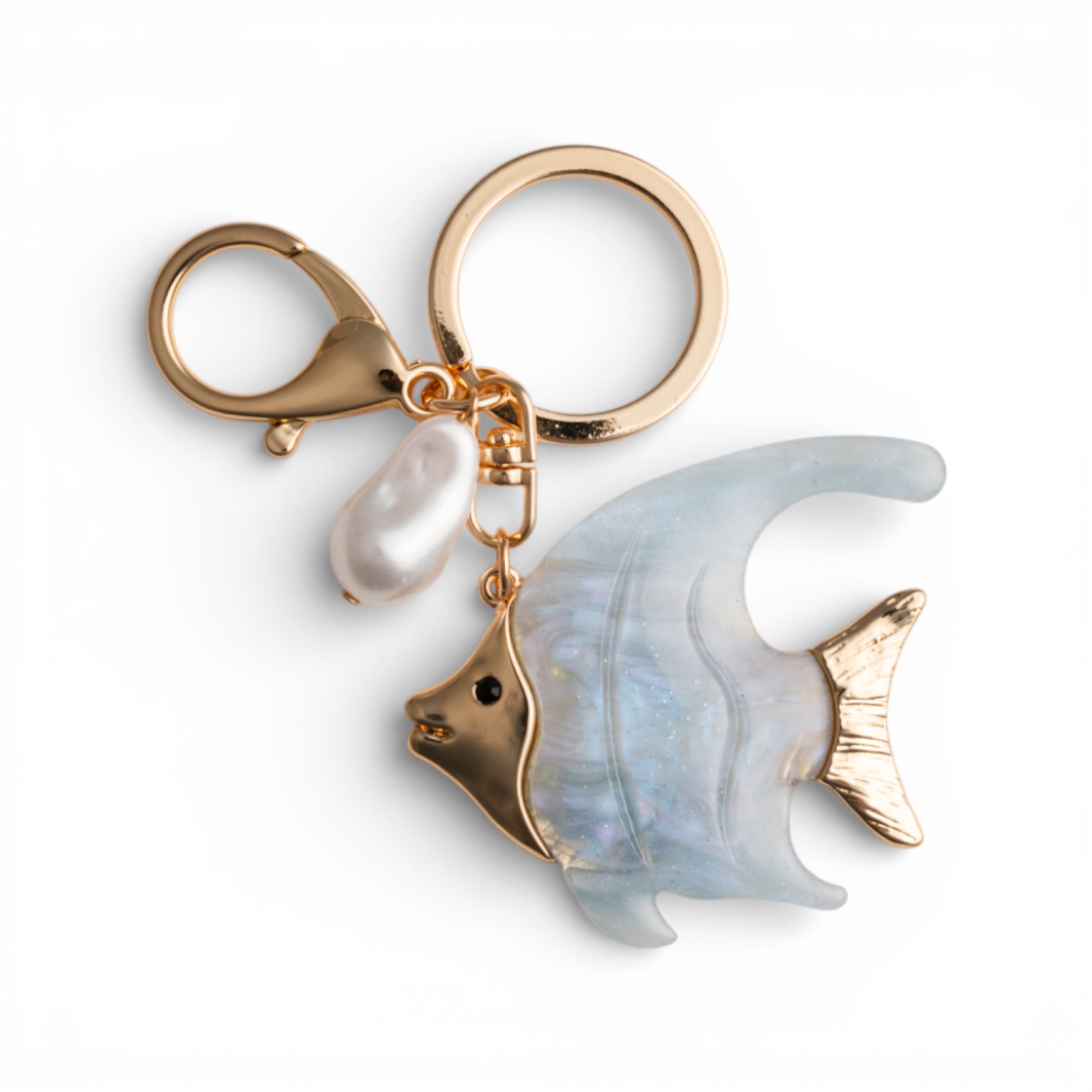 Portachiavi in metallo con pendente pesciolino tropicale in acrilico