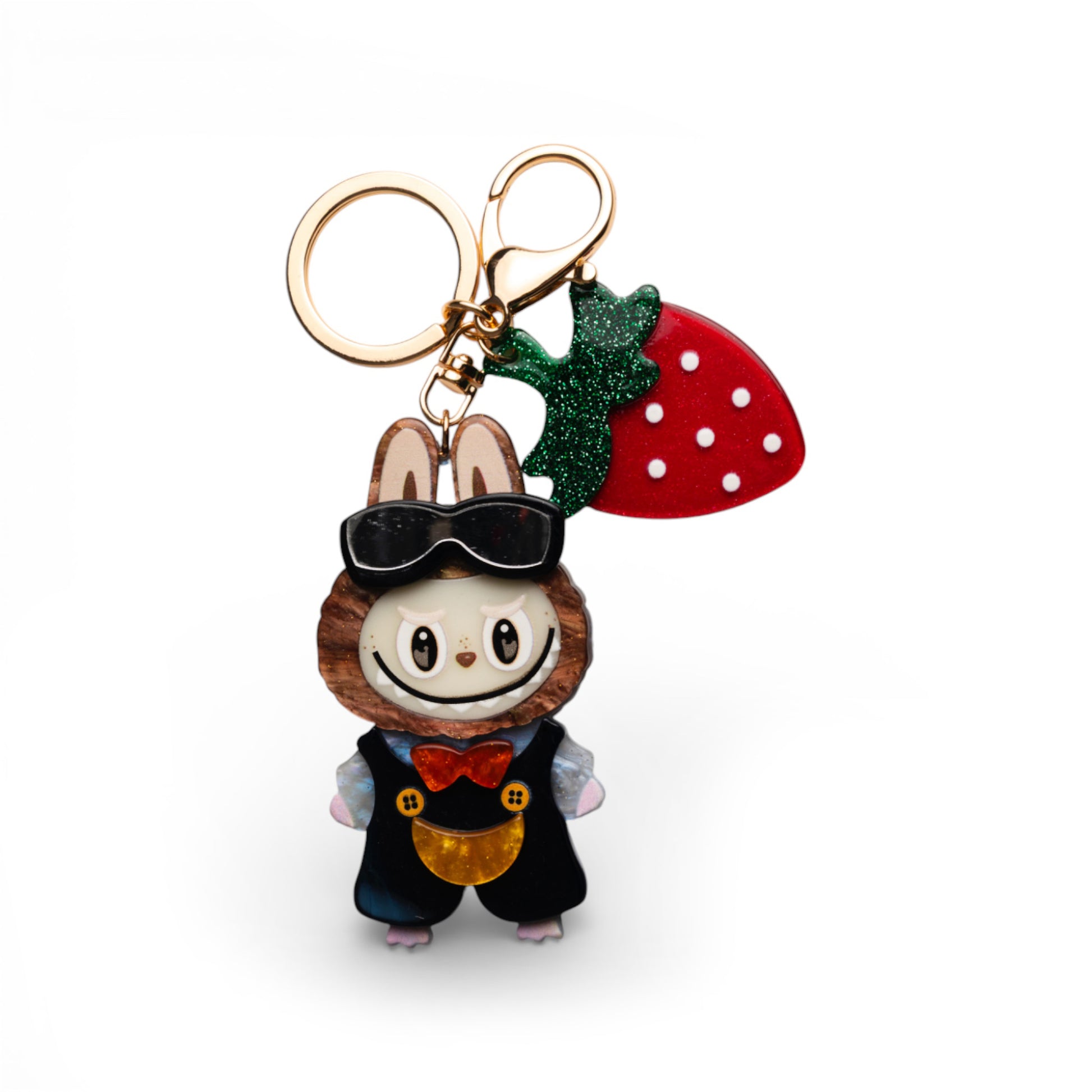 Portachiavi in metallo con pendente con orsetto con occhiali in acrilico