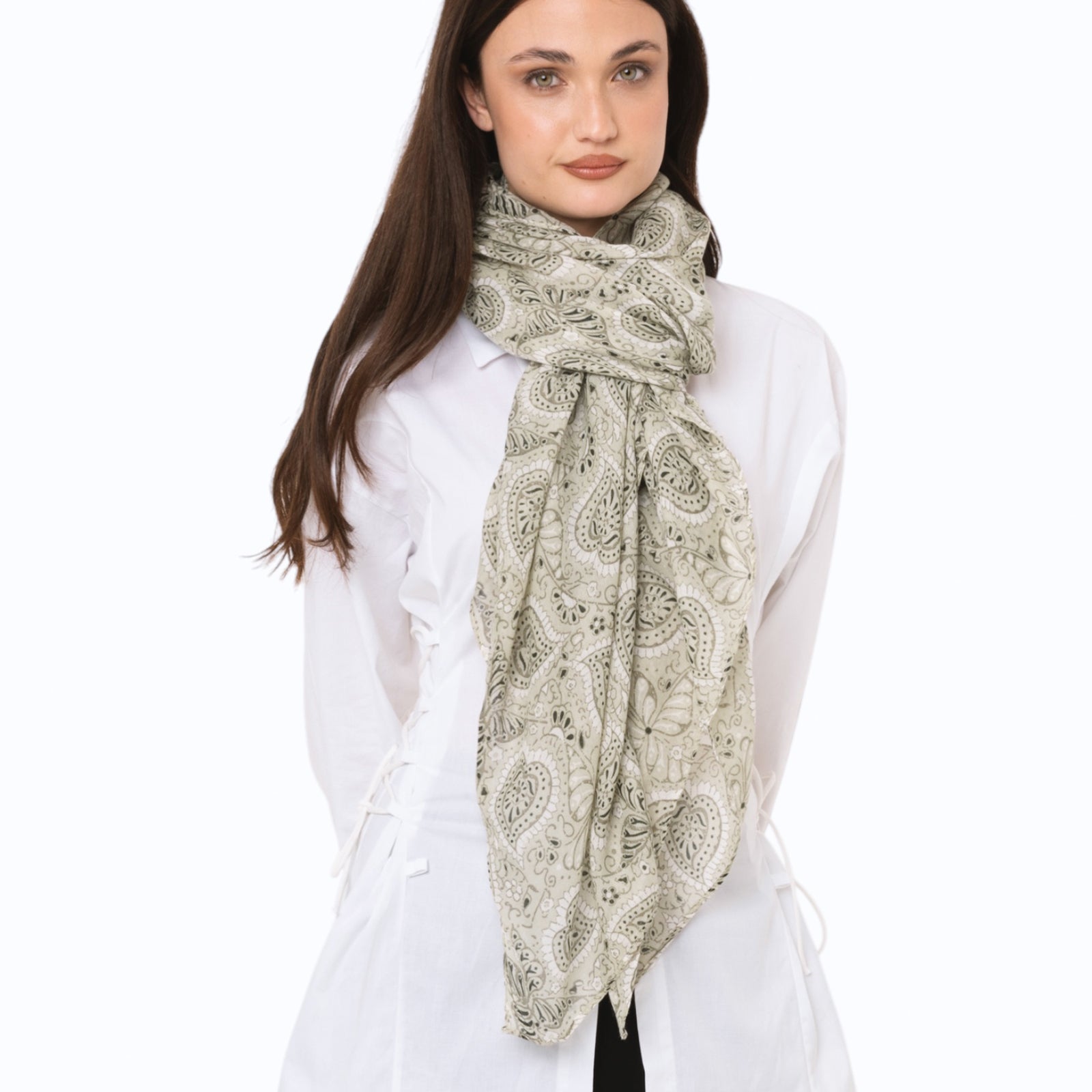 Sciarpa in cotone con stampa tono verde militare