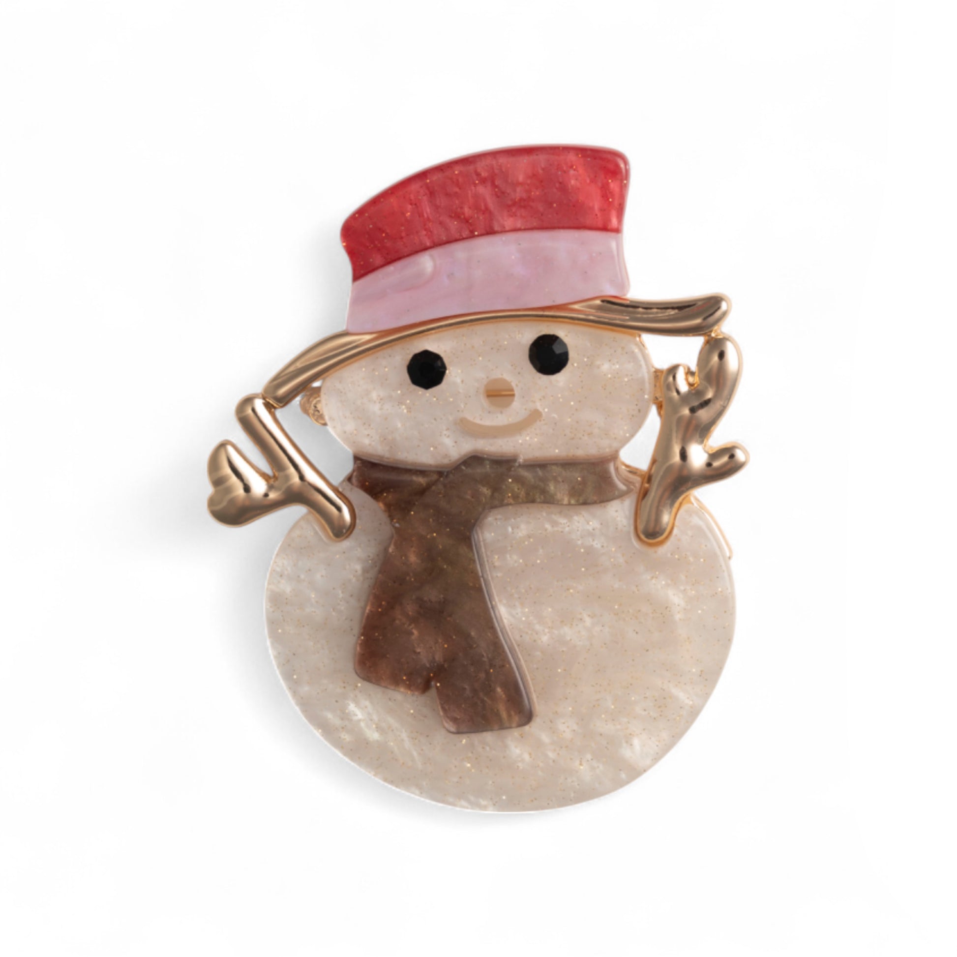 Spilla con base in metallo design a forma di pupazzo di neve in acrilico